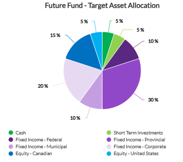 As with all long-term investments, the Future Fund is expected to grow over time. The rate at which it will grow will depend on market factors. A conservative investment policy guides the investment of the fund in accordance with the Future Fund Act. Types of investments include federal and provincial bonds, municipal and corporate bonds, high quality Canadian and US equities.